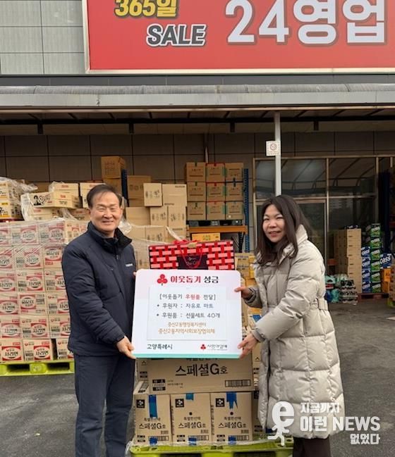 이런뉴스(e-runnews) 김삼성 기자 | 고양특례시 일산동구 중산2동은 ‘자유로마트 중산점’이 설 명절을 맞아 선물세트 40개를 기부하며 이웃사랑을 실천했다고 27일 밝혔다.
