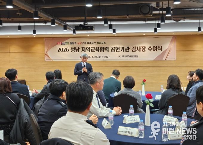 이런뉴스(e-runnews) 김삼성 기자 | 경기도성남교육지원청은 1월 27일 스카이파크 호텔에서 '성남 지역교육협력 공헌기관 감사장 수여식'을 개최하여 성남교육 발전을 위해 협력해 온 지역교육협력기관 22곳에 감사의 뜻을 전했다.