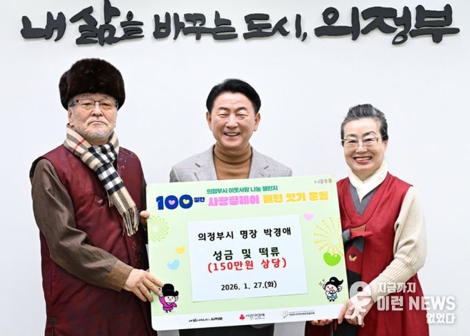 이런뉴스(e-runnews) 김삼성 기자 | 의정부시는 2025년 의정부시 명장(식품가공 분야)으로 선정된 박경애 명장이 새해를 맞아 지역사회의 어려운 이웃을 위해 직접 만든 떡 50kg(100만 원 상당)과 성금 50만 원을 기탁하며 ‘100일간 사랑릴레이 배턴 잇기’에 동참했다고 밝혔다.
