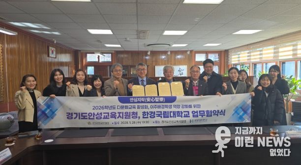 이런뉴스(e-runnews) 김삼성 기자 | 경기도안성교육지원청은 2026년 1월 28일, 경기도안성교육지원청에서 한경국립대학교와 함께 안성 관내 다문화교육 활성화 및 이주배경학생 역량 강화를 위한 업무협약(MOU)을 체결했다.