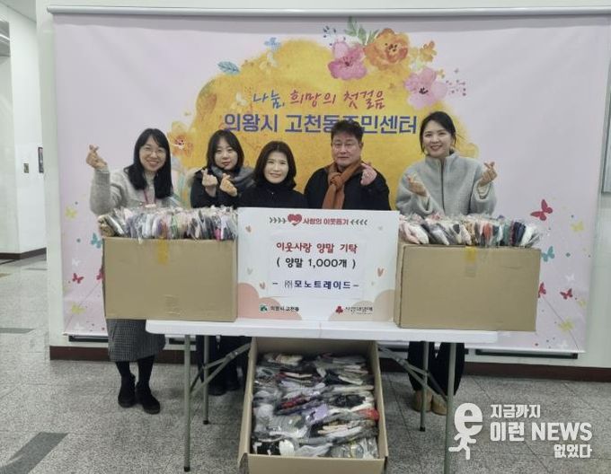 이번에 기탁된 양말은 의왕시 고천동 소재 ㈜모노트레이드에서 전달한 것으로 관내 저소득 가구와 독거노인 등 도움이 필요한 이웃들에게 배부될 예정이다.