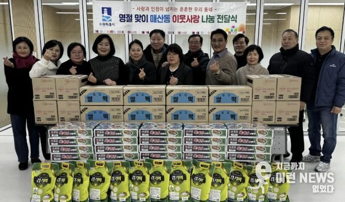 이런뉴스(e-runnews) 김삼성 기자 | 지난 6일, 수원시 팔달구 매산동 단체장협의회는 설 명절을 앞두고 매산동 행정복지센터를 방문해 취약계층 지원을 위한 기부금과 먹거리 물품을 전달하며 이웃돕기 활동을 펼쳤다.