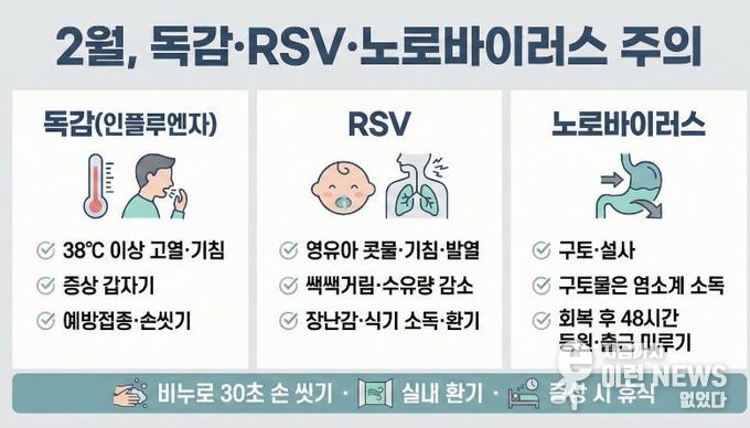 평택시 송탄보건소 관계자는 “비누로 30초 이상 손 씻기, 기침 예절, 실내 환기, 증상 시 휴식 등 기본 수칙이 감염 확산을 줄이는 가장 확실한 방법”이라고 강조했다. 이어 “특히 발열·기침이나 구토·설사 증상이 있으면 등교·출근을 미루고, 증상이 심하거나 고위험군은 조기에 진료를 받는 것이 안전하다”고 당부했다.