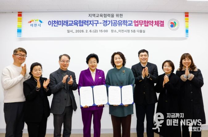 이런뉴스(e-runnews) 김삼성 기자 | 이천시는 2월 6일, 2026년도 이천미래교육협력지구(경기공유학교 학교맞춤형) 사업의 원활한 추진을 위해 이천교육지원청과 ‘이천미래교육협력지구-경기공유학교 업무협약’을 체결했다고 밝혔다.