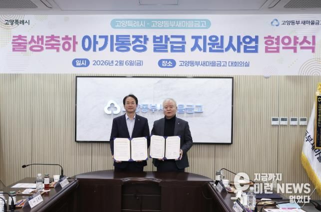 이런뉴스(e-runnews) 김삼성 기자 | 고양특례시는 지난 6일, 고양동부새마을금고와 ‘고양시민 출생축하 아기통장 발급 지원 사업’을 위한 업무협약을 체결하며 저출생 위기 극복을 위한 민관 협력을 공고히 했다.