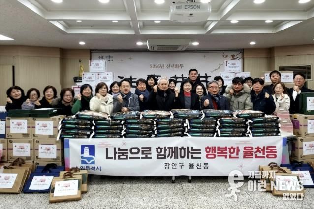 이런뉴스(e-runnews) 김삼성 기자 | 수원시 장안구 율천동 행정복지센터는 지난 9일, 설 명절을 맞아 관내 어려운 이웃에게 따뜻한 나눔을 전하고자 ‘우리동네 이웃 나눔행사’ 전달식을 개최했다.