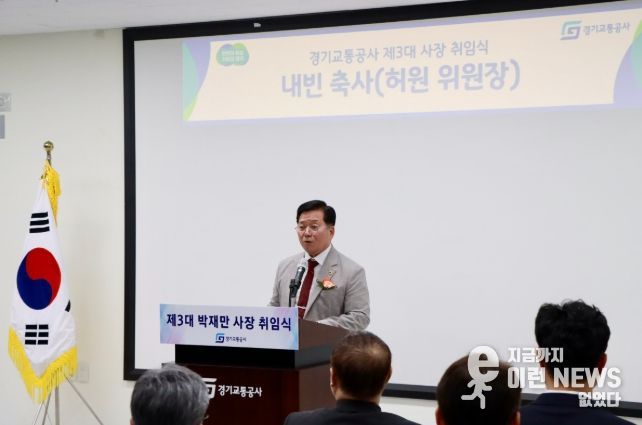 이런뉴스(e-runnews) 김삼성 기자 | 경기도의회 건설교통위원회 허원 위원장(국민의힘, 이천2)은 27일 경기교통공사에서 열린 제3대 박재만 사장 취임식에 참석해, 경기교통공사가 경기도 교통정책의 핵심 실행기관으로서 도민이 체감하는 교통서비스 변화를 이끌어야 한다고 강조했다.