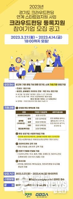 신청은 다음 달 14일까지로, 자세한 사항은 경기스타트업플랫폼에서 확인하거나, 경기도경제과학진흥원 창업육성팀으로 문의하면 된다.