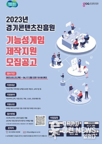 이런뉴스(e-runnews) 김삼성 기자 | 경기도는 ‘2023년 기능성게임 제작 지원’ 참여기업을 오는 17일까지 모집한다.