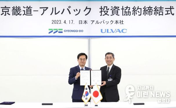 김동연 지사는 17일 오후 가나가와현 지가사키시 알박(ULVAC)그룹 본사에서 이와시타 세츠오(Iwashita Setsuo) 대표이사와 이런 내용을 담은 ‘경기도-주식회사 알박 투자양해각서’에 서명했다.