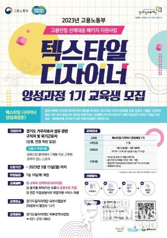 이런뉴스(e-runnews) 김삼성 기자 | 경기도와 경기도일자리재단이 경기북부 섬유산업 활성화와 일자리 창출을 위해 고부가가치 상품 개발인력을 양성하는 ‘텍스타일 디자이너 양성 과정’ 1기 교육생을 모집한다.