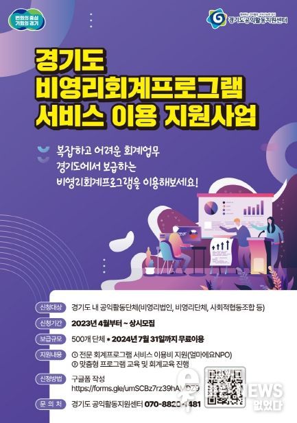 이런뉴스(e-runnews) 김삼성 기자 | 경기도가 도내 비영리단체 대상으로 회계프로그램을 무료로 보급한다.