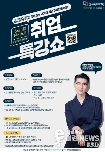 이런뉴스(e-runnews) 김삼성 기자 | 경기도일자리재단은 청년 구직자의 취업 역량 강화를 위한 ‘인싸담당자와 함께하는 취업 특강쇼’를 6월 1일 오후 2시 수원청소년문화센터에서 개최한다.