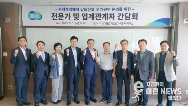 이번 간담회에는 과도한 위약금 부과를 이유로 본사에 분쟁조정을 신청해 조정 성사된 업계 가맹점주와 김홍석 경기도 가맹사업거래분쟁조정협의회 위원장, 김도준 법무법인 신효 대표변호사, 박호진 한국프랜차이즈협회 사무총장, 장재남 프랜차이즈산업연구원장, 정종열 가맹점주협의회 자문위원장, 오영희 서울시 공정거래분쟁조정팀장, 서홍진 인천 공정거래지원센터 팀장 등 전문가들이 참석했다.