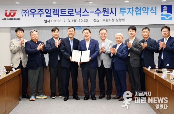 수원시는 3일 시청 상황실에서 우주일렉트로닉스와 ‘본사와 연구소 이전을 위한 투자 협약’을 체결했다.