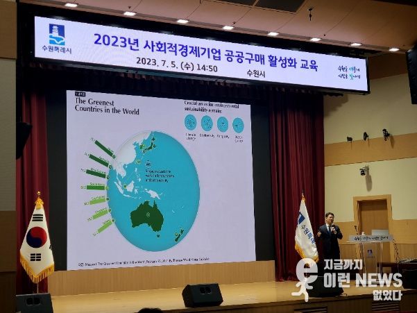 이런뉴스(e-runnews) 김삼성 기자 | 수원시가 5일 시청 대강당에서 공직자와 산하기관 직원을 대상으로 ‘사회적경제기업 공공구매 활성화 교육’과 ‘공정무역 교육’을 진행했다.