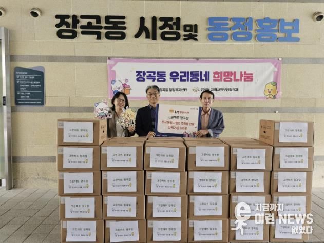 이런뉴스(e-runnews) 김삼성 기자 | 그린마트 장곡점은 다가오는 추석을 맞아 지난 9월 30일 장곡동 행정복지센터(동장 도영찬)에 잡곡(2kg) 500포를 후원했다.