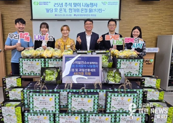 이런뉴스(e-runnews) 김삼성 기자 | 남양주시는 9월 30일 남부희망케어센터가 한국수력원자력(주)팔당수력발전소의 후원을 받아 ‘팔당愛 온기, 한가위 온정 물(水)씬~’이라는 이름으로 2025년 추석 명절맞이 나눔행사를 진행했다고 밝혔다.