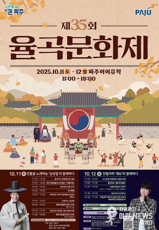 이런뉴스(e-runnews) 김삼성 기자 | 파주시는 오는 10월 11일부터 12일까지 이틀간, 파주이이유적에서 다양한 문화예술 프로그램을 통해 선생의 사상을 되새기는 ‘제35회 율곡문화제’를 개최한다고 밝혔다.