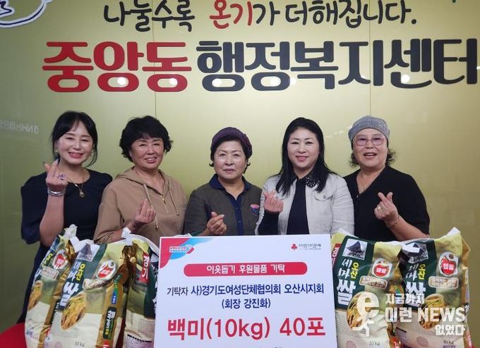 이런뉴스(e-runnews) 김삼성 기자 | 사단법인 경기도여성단체협의회 오산시지회는 지난 10월 1일, 추석 명절을 앞두고 지역 내 어려운 이웃을 위해 백미(10kg) 5포씩을 오산시 관내 8개 동 행정복지센터에 각각 기탁했다.