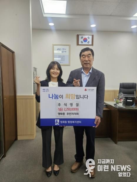 이런뉴스(e-runnews) 김삼성 기자 | 수원시 장안구 영화동 주민자치회는 지난 1일, 추석 명절을 앞두고 관내 도움이 필요한 이웃들을 위해 성금 225만원을 기부했다고 밝혔다.