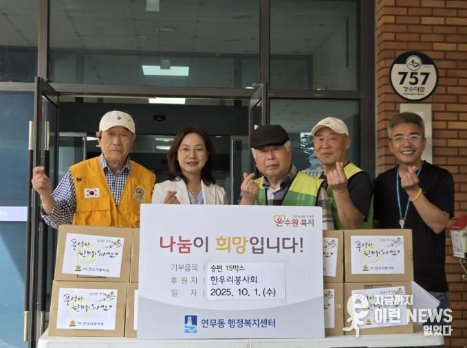 공순정 연무동장은 “매년 명절마다 잊지 않고 따뜻한 정성을 전해주시는 한우리봉사회에 감사드린다”며 “전달된 물품이 어려운 이웃들에게 따뜻한 명절을 보내는 데 도움이 될 것”이라고 말했다.