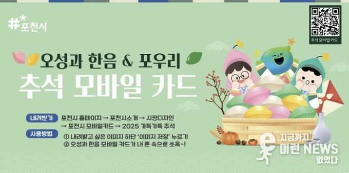 이런뉴스(e-runnews) 김삼성 기자 | 포천시는 지난 1일 민족 최대 명절 추석을 맞아 시민들이 감사와 따뜻한 마음을 손쉽게 전할 수 있도록 ‘추석 모바일 카드’를 무료 배포했다.