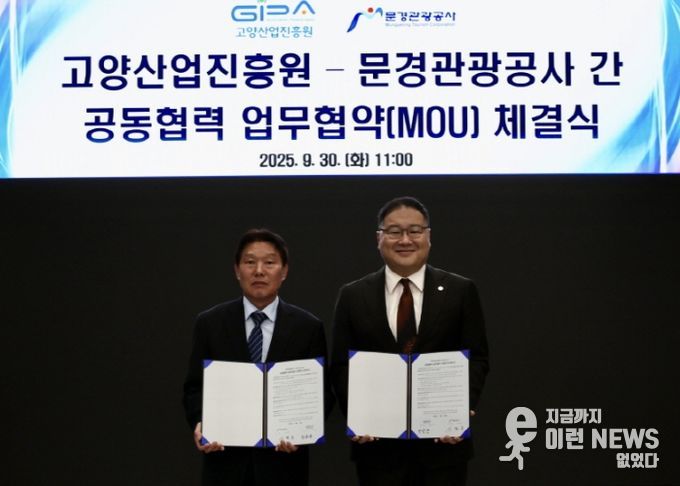 이런뉴스(e-runnews) 김삼성 기자 | 고양산업진흥원이 지난 30일, 고양아쿠아특수촬영스튜디오에서 문경관광공사와 공동협력 업무협약 MOU를 체결했다.