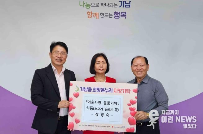 이런뉴스(e-runnews) 김삼성 기자 | 지난 9월 30일 장경숙(가남읍 주민)씨가 가남읍 내 어려운 이웃들을 위해 소고기와 음료수 등 식품을 가남읍 행정복지센터에 기탁했다.