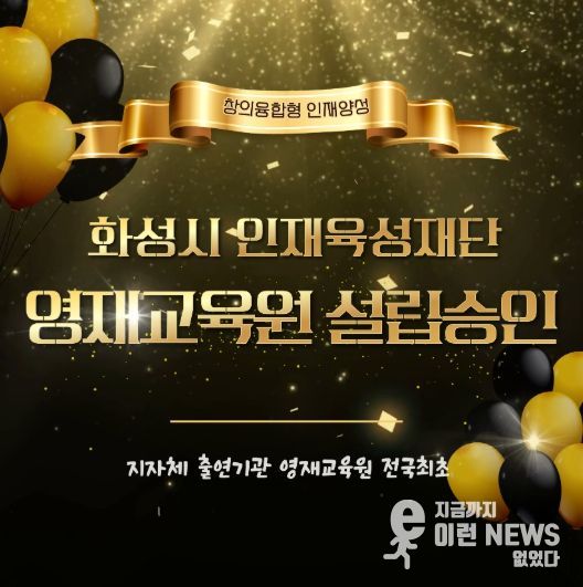 시는 지난달 29일 경기도영재교육진흥위원회 심의에서 화성시인재육성재단 영재교육원 설립이 공식 승인됐으며, 2일 경기도교육청으로부터 이를 공식 통보 받았다고 2일 밝혔다.