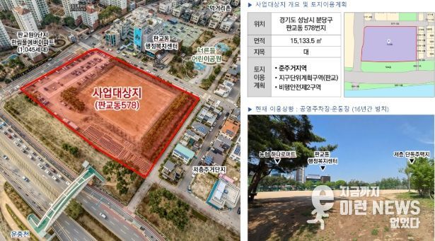 이런뉴스(e-runnews) 김삼성 기자 | 성남시는 판교동 578번지 옛 차량등록사업소 부지의 개발 방향을 ‘기업 유치 및 복합문화체육시설 조성’으로 확정하고, 내년부터 사업을 본격 추진한다고 2일 밝혔다. 이는 16년간 방치된 부지를 지역 발전과 시민 편익 증진의 거점으로 탈바꿈시키려는 시의 강력한 의지가 반영된 결과다.