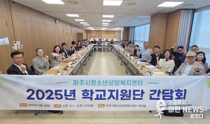 이런뉴스(e-runnews) 김삼성 기자 | (재)파주시청소년재단 파주시청소년상담복지센터(센터장 장문희)는 9월 30일 오후 3시, 센터 내 백리향에서 관내 초·중·고 33개교 교장을 대상으로 '2025년 청소년안전망 학교지원단 간담회'를 개최했다.