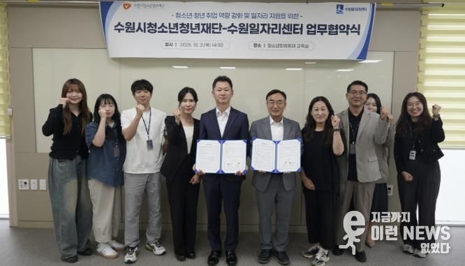 이런뉴스(e-runnews) 김삼성 기자 | 수원시청소년청년재단과 수원일자리센터는 10월 2일, 청소년청년의 취업 역량 강화와 일자리 지원을 위한 업무협약(MOU)을 체결했다.