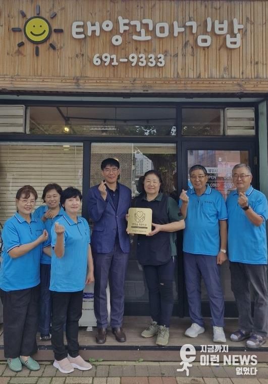 이런뉴스(e-runnews) 김삼성 기자 | 평택시 팽성읍 지역사회보장협의체는 지난 2일, 나눔 활동에 동참한 ‘태양꼬마김밥’에 ‘착한 이웃’ 현판을 전달했다.