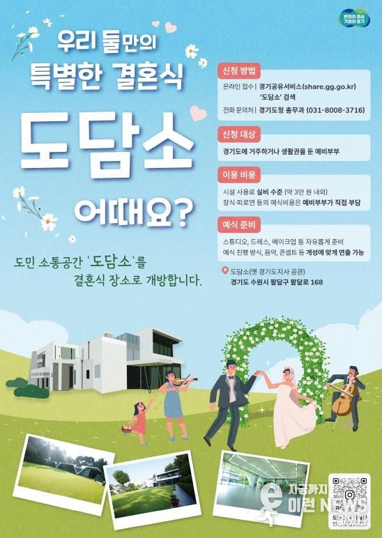 이런뉴스(e-runnews) 김삼성 기자 | 도민 소통공간인 ‘도담소’를 작은결혼식 공간으로 개방한 경기도가 1호 예비부부를 모집한다고 13일 밝혔다.