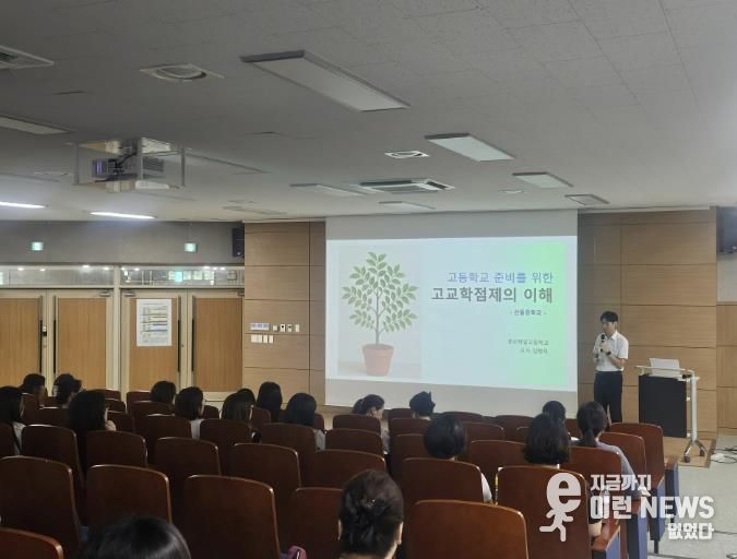 이번 연수 주요 내용은 ▲고교학점제 전반의 이해 ▲ 학점 이수 인정 기준 ▲최소 성취수준 보장지도의 이해 ▲ 변화하는 대입 제도 ▲ 슬기로운 고등학교 생활 준비하기 등으로 구성되어 각 중학교별 맞춤형 연수로 진행됐다.