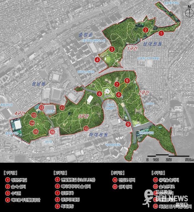 시는 대원공원 내 미정비 공원 부지를 중심으로 중앙·하대원·성남동 구간을 1~4구간으로 특화했다.