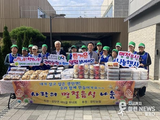 새마을부녀회 회원들은 이른 아침부터 모여 정성스럽게 재료를 직접 손질하여 불고기, 전, 삼색나물 등 각종 추석 음식을 만들었으며, 이 행사에는 광탄면 지역사회보장협의체 위원들도 함께 했다.