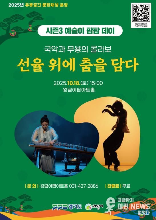 이런뉴스(e-runnews) 김삼성 기자 | 의왕시는 10월 18일 오후 3시, 왕림이팝아트홀(의왕시 왕곡로 74)에서 전통과 현대가 조화를 이루는 공연 '국악과 무용의 콜라보 - 선율 위에 춤을 담다'를 선보인다.