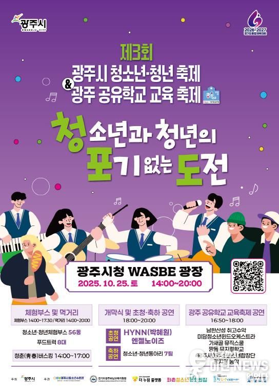 이와 관련 방세환 시장은 “청소년과 청년의 도전 정신은 지역사회의 미래를 밝히는 중요한 힘”이라며 “이번 축제가 청소년과 청년이 꿈을 펼치고 시민과 함께 호흡하는 뜻깊은 장이 되기를 바란다”고 말했다.