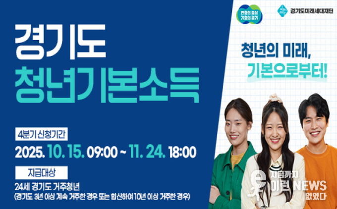 이런뉴스(e-runnews) 김삼성 기자 | 광주시는 청년의 사회적 기본권을 보장하고 지역 경제 활성화를 도모하기 위한 ‘2025년 4분기 청년기본소득’ 신청을 10월 15일부터 11월 24일까지 접수한다고 14일 밝혔다.