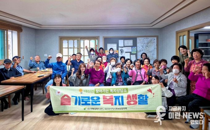 한편 대신면 행정복지센터는 주민 밀착형 복지 실현을 위해 매월 1회 마을 경로당을 찾아가 복지상담소 슬복생을 운영하고 있으며 앞으로도 지역 주민들의 삶의 질 향상과 복지 사각지대 해소를 위해 다양한 맞춤형 복지서비스를 제속적으로 제공할 계획이다.