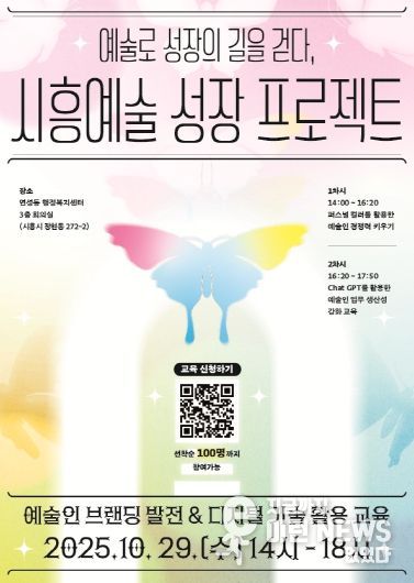 시흥예술 성장 프로젝트는 ‘문화예술 성장 및 예술인 브랜딩 발전’이라는 주제로 1부 퍼스널 컬러 교육과 2부 챗지피티(ChatGPT)를 활용한 디지털 교육으로 나눠 진행된다.