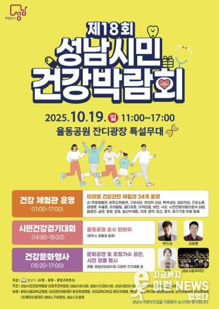 이런뉴스(e-runnews) 김삼성 기자 | ‘제18회 성남시민 건강박람회’가 오는 10월 19일 오전 11시~오후 5시 율동공원 잔디광장에서 열린다.
