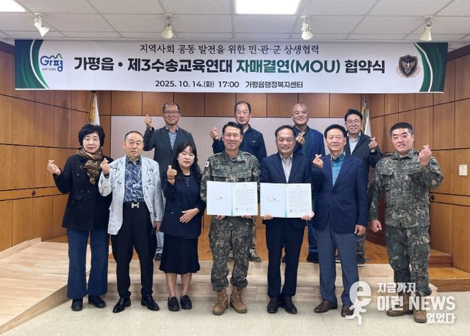 장석조 가평읍장은 “지난 수해복구에 적극 참여해 준 제3수송교육연대에 감사드리며, 이번 협약으로 상생의 가치가 지역 곳곳에 뿌리내리는 계기가 되길 바란다”고 말했다.