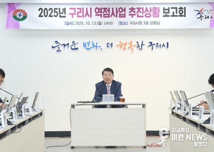 이런뉴스(e-runnews) 김삼성 기자 | 구리시는 지난 10월 13일 시청 3층 상황실에서 시정 주요 역점사업의 추진 현황을 점검하기 위한 '역점사업 추진 상황 보고회'를 개최했다.