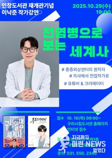 특히 작가초청 강연에는 『중증외상센터 : 골든아워』의 원작자인 이낙준 작가가 참여한다. 행사는 10월 29일(화) 저녁 7시, 새롭게 단장한 지하 1층 북카페형 개방 공간에서 진행된다.