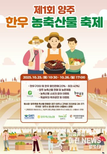 이런뉴스(e-runnews) 김삼성 기자 | 양주시가 양주축산농협과 공동으로 주최하고, 경기도농수산진흥원 공모사업 지원으로 추진되는 '제1회 양주 한우 농축산물 축제'를 오는 10월 25일부터 26일까지 이틀간 개최한다.