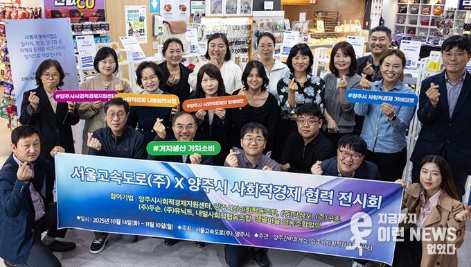 이런뉴스(e-runnews) 김삼성 기자 | 양주시와 서울고속도로㈜가 지난 14일 오후 3시, 양주휴게소 2층 전시공간에서 ‘서울고속도로(주)×양주시 사회적경제 협력 전시회’ 개막 기념식을 개최했다.