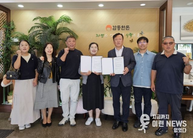 이런뉴스(e-runnews) 김삼성 기자 | 양주시 옥정1동 지역사회보장협의체(공동위원장 박정훈)가 16일 관내 업소 ‘감동한돈(대표 신유미)’과 ‘나눔가게’ 업무협약을 체결했다.